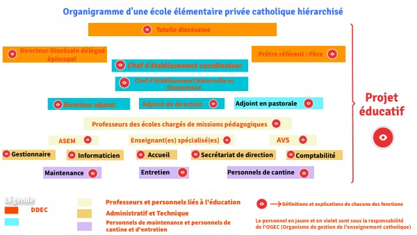 Organigramme d'une école élémentaire privée catholique hiérarchisé