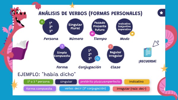 Infinitivo (ej., 'decir') Gerundio (ej., 'diciendo') Participio (ej., 'dicho')