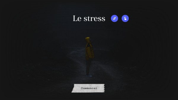 Vous vous êtes perdus suite à un envahissement de stress. Le but est de reconnaître les signes, les conséquences, les moyens de prévention et de gestion du stress pour sortir de ce tunnel.Retrouve les 4 symboles cachés dans le tunnel pour sortir. Parviendras-tu à sortir de ce tunnel ?