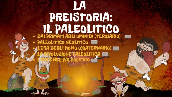 Dalle prime scimmie antropomorfe, attraverso una lenta evoluzione e un progressivo sviluppo dell’intelligenza e delle capacità, si arriva alla comparsa dell’uomo sulla Terra, circa 2 milioni di anni fa. Da quel momento ha inizio la lunghissima fase della Preistoria, che, in base ai reperti in pietra ritrovati dagli archeologi, è stata suddivisa in due periodi.
