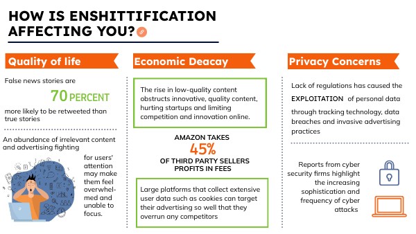 Enshittification is a term that was coined by Corey Doctorow to describe the decreasing quality of online platforms and services