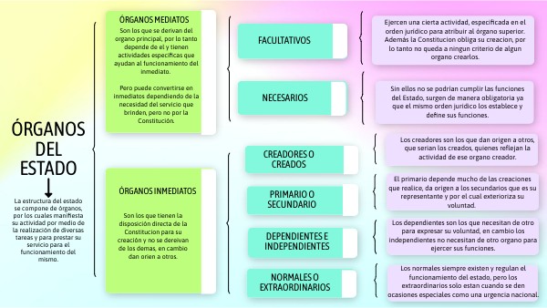 Son los que se derivan del organo principal, por lo tanto depende de el y tienen actividades especificas que ayudan al funcionamiento del inmediato. Pero puede convertirse en inmediatos dependiendo de la necesidad del servicio que brinden, pero no por la Constitución.