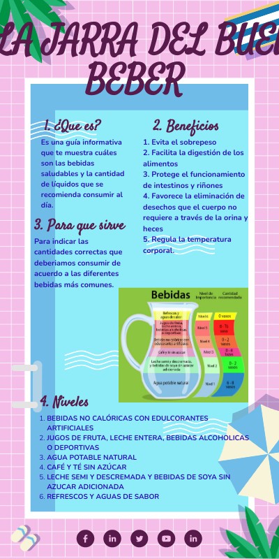 Es una guía informativa que te muestra cuáles son las bebidas saludables y la cantidad de líquidos que se recomienda consumir al día.