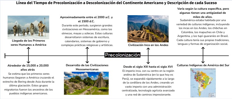 Línea del Tiempo de Precolonización a Descolonización del Continente Americano y Descripción de cada Suceso