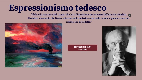 “Nella mia arte uso tutti i mezzi che ho a disposizione per ottenere l’effetto che desidero. Desidero veramente che l’opera mia esca dalla materia, come nella natura la pianta cresce dal terreno che le è adatto.” Citazione dell'autore Emil Nolde