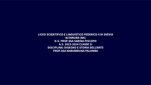 LICEO SCIENTIFICO E LINGUISTICO FEDERICO II DI SVEVIAALTAMURA (BA) D.S. PROF.SSA SABINA PISCOPO A.S. 2023-2024 CLASSE 2i DISCIPLINA: DISEGNO E STORIA DELL'ARTE PROF.SSA MARIABRUNA PALOMBA