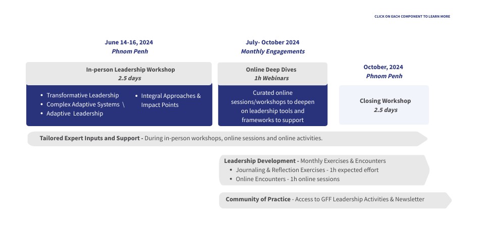Curated online sessions/workshops to deepen on leadership tools and frameworks to support policymaking.