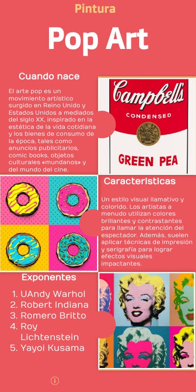 El arte pop es un movimiento artístico surgido en Reino Unido y Estados Unidos a mediados del siglo XX, inspirado en la estética de la vida cotidiana y los bienes de consumo de la época, tales como anuncios publicitarios, comic books, objetos culturales «mundanos» y del mundo del cine.