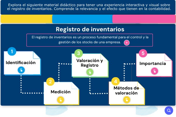 Explora el siguiente material didáctico para tener una experiencia interactiva y visual sobre el registro de inventarios. Comprende la relevancia y el efecto que tienen en la contabilidad.