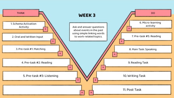 Ask and answer questions about events in the past using simple linking words to work-related topics.