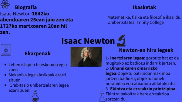 Isaac Newton 1642ko abenduaren 25ean jaio zen eta 1727ko martxoaren 20an hil zen.