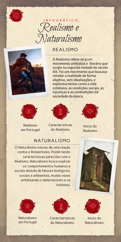 Realismo em português refere-se a um movimento literário principalmente em Portugal. O Realismo, com uma ideologia "contra" o Romantismo, buscava retratar a realidade de forma objetiva, sem idealizações, e explorava temas como a vida quotidiana, as condições sociais, as injustiças e as contradições da sociedade da época. Assim, destacam-se as suas principais características: - Objetividade e representação da realidade: - Análise psicológica dos personagens; - Crítica social e moral; - Estilo literário refinado; - Preocupação com a precisão e a verossimilhança.