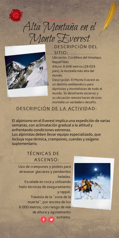 El alpinismo en el Everest implica una expedición de varias semanas, con aclimatación gradual a la altitud y enfrentando condiciones extremas. Los alpinistas deben llevar equipo especializado, que incluya ropa térmica, crampones, cuerdas y oxígeno suplementario.