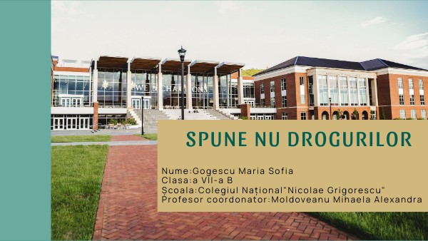 În concluzie, "Spune Nu Drogurilor" este un apel la acțiune și la responsabilitate colectivă. Combaterea consumului de droguri nu este doar o responsabilitate a indivizilor, ci a întregii societăți. Trebuie să lucram împreună pentru a preveni și a elimina această amenințare gravă la adresa sănătății și bunăstării noastre. Prin informare, educație și sprijin, putem construi o lume mai sigură și mai sănătoasă pentru generațiile viitoare.