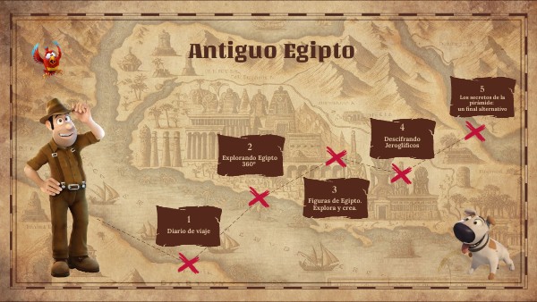 Intrépidos e Intrépidas, Llegados hasta aquí, habréis conocido a personajes importantes de la época como faraones, reinas, dioses, escribas, etc. Sin embargo, el equipo de Tadeo Jones necesita que realicéis una investigación echaustiva sobre ellos. Para esta tarea, os dividiréis en grupos de 4 alumnos, cada grupo se encargará de un personaje y realizará una presentación. Todas las presentaciones serán compartidas en un padlet. Podéis utilizar los siguientes recursos: