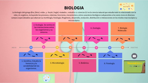 La biología (del griego βίος [bíos] «vida», y -λογία [-logía] «tratado», «estudio» o «ciencia»)12 es la ciencia natural que estudia todo lo relacionado con la vida y lo orgánico, incluyendo los procesos, sistemas, funciones, mecanismos u otros caracteres biológicos subyacentes a los seres vivos en diversos campos especializados que abarcan su morfología, fisiología, filogénesis, desarrollo, evolución, distribución e interacciones en los niveles macroscópico y microscópico.