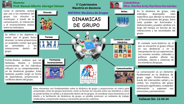 Estos elementos son fundamentales sobre la dinámica de grupo y proporcionan un marco para comprender cómo los grupos funcionan, cómo se forman los vínculos entre sus miembros y cómo se puede facilitar el cambio y el desarrollo dentro de los grupos. Al considerar estos elementos en el diseño y la facilitación de dinámicas de grupo, es posible promover un ambiente de trabajo colaborativo, comprensión mutua y crecimiento personal y colectivo.