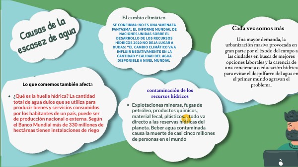 - Explotaciones mineras, fugas de petróleo, productos químicos, material fecal, plásticos… todo va directo a las reservas hídricas del planeta. Beber agua contaminada causa la muerte de casi cinco millones de personas en el mundo
