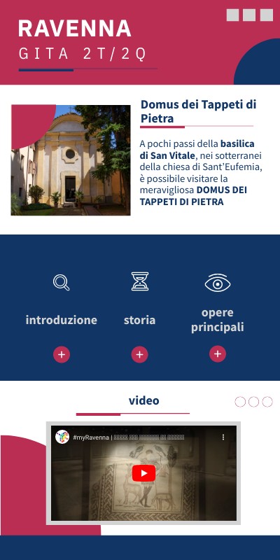 A pochi passi della basilica di San Vitale, nei sotterranei della chiesa di Sant’Eufemia, è possibile visitare la meravigliosa DOMUS DEI TAPPETI DI PIETRA