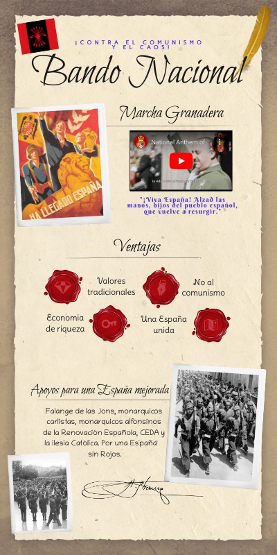 Falange de las Jons, monarquicos carlistas, monarquicos alfonsinos de la Renovación Española, CEDA y la ilesia Católica. Por una Es`paña sin Rojos.