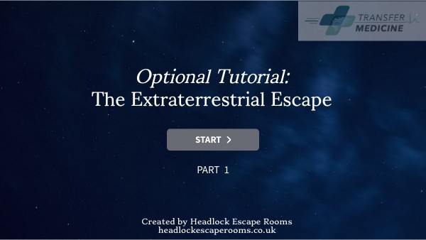 Welcome to the Extraterrestrial Escape! This interactive escape game will guide you through a series of transfer-related puzzles to solve over the next 4 weeks. You will encounter some key principles of transfer medicine and engage in discussing some of the challenges facing a critical-care transfer. These games will be sign posted and will link back to relevant discussion boards in FutureLearn. Hover over the planet to move on.