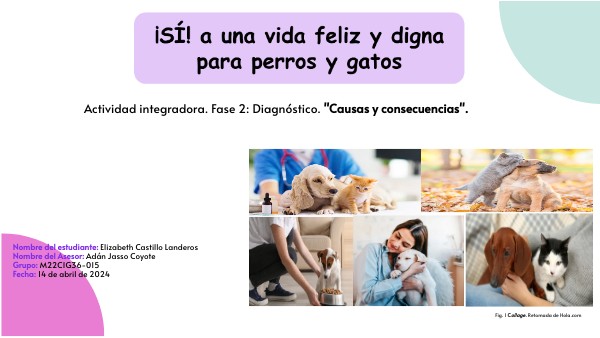 REFERENCIAS Collage. Hernán, P. (2021, marzo 24). Perros y gatos felices: esto es lo que tus mascotas necesitan para sentirse bien. Hola.com. https://www.hola.com/mascotas/galeria/20210324186573/perros-gatos-felices-necesidades/1/ genially. (s/f). Genial.Ly. https://app.genial.ly/dashboard Piamore, E. (2019, junio 25). MALTRATO ANIMAL - Tipos, Causas, Prevención y Cómo denunciar. expertoanimal.com. https://www.expertoanimal.com/el-maltrato-animal-tipos-causas-y-como-denunciar-24291.html Prepa en Línea-SEP. Árbol de problemas. https://g36c1.prepaenlinea.sep.gob.mx/mod/scorm/view.php?id=3111 Título del proyecto. Retomado de la actividad integradora. Fase 1: "Identificación del proyecto".