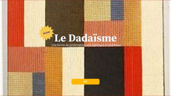 Le dadaïsme ou dada est un mouvement littéraire et artistique fondé à Zurich en 1916 par Hugo Ball, Emmy Hennings, Tristan Tzara, Richard Huelsenbeck, Marcel Janco et Hans Arp. Le nom de ce mouvement est "Dada" car c'est le premier mot pronnoncé en Suède quand on naît ou parceque c'est le premier mot qui est apparu lorsqu'on a ouvert le disctionnaire. Ce mouvement avait pour principe de rejeter les règles de l'art traditionnel tel qu'il avait été connu et toutes les autres formes d'art. Souvent parodiées - et idéalisés par la classe bourgeoise de l'époque.C’était une révolte contre l’art des artistes eux-mêmes, qui rejetaient la société de leur temps et tout son système de valeurs. Les formes d'art traditionnelles étaient donc utilisées de manière satirique et exagérée.