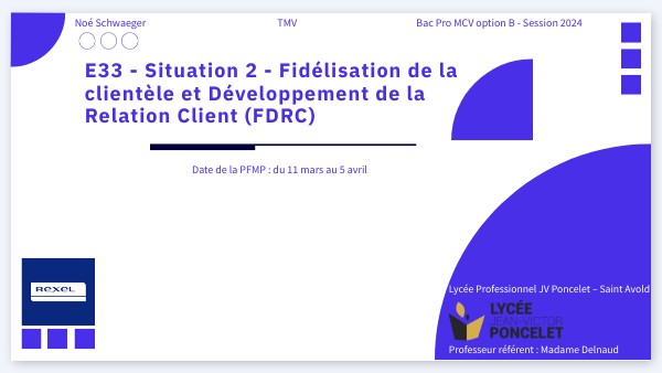 E33 - Situation 2 - Fidélisation de la clientèle et Développement de la Relation Client (FDRC)