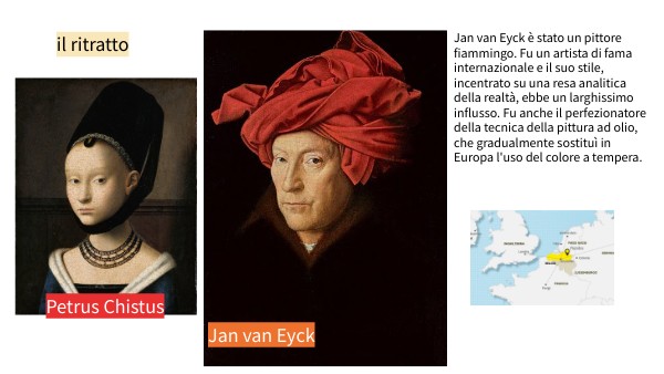 Jan van Eyck è stato un pittore fiammingo. Fu un artista di fama internazionale e il suo stile, incentrato su una resa analitica della realtà, ebbe un larghissimo influsso. Fu anche il perfezionatore della tecnica della pittura ad olio, che gradualmente sostituì in Europa l'uso del colore a tempera.