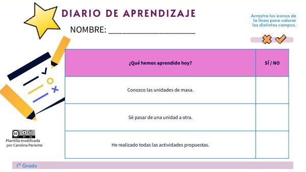 Arrastra los iconos de la línea para valorar los distintos campos.
