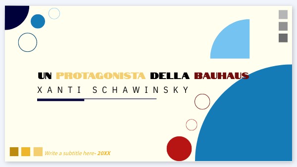 Xanti Schawinsky, nato Alexander Schawinsky (1904-1979), è stato un artista svizzero di origine polacco-russa, attivo soprattutto nel campo delle arti visive e del design.È noto soprattutto per il suo lavoro nell'ambito del Bauhaus, la celebre scuola d'arte e design fondata in Germania negli anni '20.