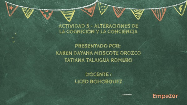 Actividad 5 - Alteraciones de la Cognición y la Conciencia presentado por: kAren dayana moscote orozco tatiana talaigua romero docente : liced bohorquez