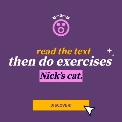 Nick has got a cat. Nick’s cat’s name is Pitty. Nick’s cat is big and nice. It is black and white. It eats meat and fish. Nick’s cat drinks milk. Pitty can run and jump. Nick teaches Pitty to swim but it can’t swim. Nick teaches Pitty to sing but it can’t sing.