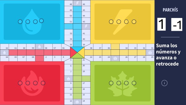 🎲 PARCHÍS: INSTRUCCIONES PARA PASARLO GENIAL Jugadores: De 2 a 4 personas. Fichas y Casa: Cada jugador elige un color (amarillo, azul, rojo o verde) y tiene 4 fichas de ese color. Cada uno empieza en su "casa", que es la zona del tablero del mismo color. Casillas Seguras: Hay 8 casillas especiales (grises con símbolo) donde tus fichas están a salvo de ser capturadas. Objetivo: ¡Ser el primero en llevar tus 4 fichas desde la casa hasta la meta, recorriendo todo el tablero! 🚀 Cómo se Juega Inicio: Todos lanzan el dado digital. El que saque el número más alto, empieza. Salir de Casa: Saca un 5 en el dado para mover tus fichas fuera de casa. Moviendo Fichas: Lanza el dado y mueve una ficha tantas casillas como indique el dado. ¡Doble Turno con el 6!: Si sacas un 6, juegas otra vez. Y si todas tus fichas están fuera de casa, el 6 cuenta como 7. Puentes: Si dos fichas del mismo color están en la misma casilla, forman un puente y bloquean el paso a los demás. Abrir Puentes: Si sacas un 6 y tienes un puente, debes mover una de esas fichas. Capturar Fichas: Si caes en una casilla con una ficha contraria (que no sea segura), la capturas y la mandas a su casa. ¡Y mueves una de tus fichas 20 casillas! Llegando a Meta: Da la vuelta al tablero y saca el número exacto en el dado para entrar en la meta. En la fila de llegada, tus fichas están a salvo de ser capturadas. Contando 10: Si una ficha llega a la meta, mueve otra de tus fichas 10 casillas. 🏆 Ganar el Juego La primera persona que logre meter sus 4 fichas en la meta, ¡gana!