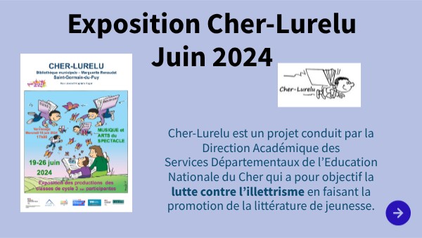 Cher-Lurelu est un projet conduit par la Direction Académique des Services Départementaux de l’Education Nationale du Cher qui a pour objectif la lutte contre l’illettrisme en faisant la promotion de la littérature de jeunesse.
