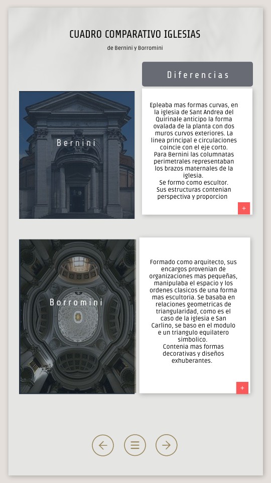 Epleaba mas formas curvas, en la iglesia de Sant Andrea del Quirinale anticipo la forma ovalada de la planta con dos muros curvos exteriores. La linea principal e circulaciones coincie con el eje corto.Para Bernini las columnatas perimetrales representaban los brazos maternales de la iglesia. Se formo como escultor. Sus estructuras contenian perspectiva y proporcion