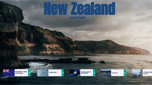 Questo paese, con una superficie totale di 267.710 km², ospita poco più di 5 milioni di abitanti (di cui circa 600 mila sono nativi Maori, gli altri sono discendenti dei colonizzatori Europei) la Capitale è Wellington situata nell'isola del nord. Religioni della Nuova Zelanda sono:l'angliacanesimo e il cattolicesimo. Lingua Ufficiale è l'inglese ma presenta alcune minoranze.