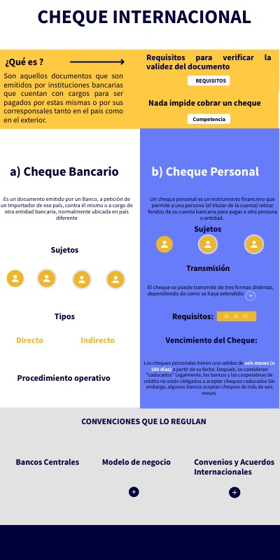 Un cheque internacional es un documento bancario que permite retirar una suma de dinero en euros o en otra moneda en bancos ubicados en el extranjero a las personas con las que realizas tus operaciones internacionales, bien sean cobros o pagos.
