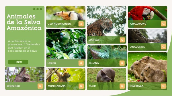 A continuacion se presentaran 10 animales que habitan en el ecosistema de la selva.