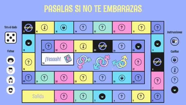 Partiendo desde la casilla de salida, tendréis que ir tirando el dado y respondiendo a todas las preguntas. Cuando la respuesta sea incorrecta, pasará el turno y deberan pensarlo para más tarde. El equipo ganador será el que consiga llegar a la casilla de llegada. ¡Mucha suerte!