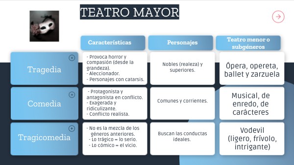 - Temática muy variada. - Tono exagerado, caricaturesco o grotesco. - Nos enfrenta con la realidad.