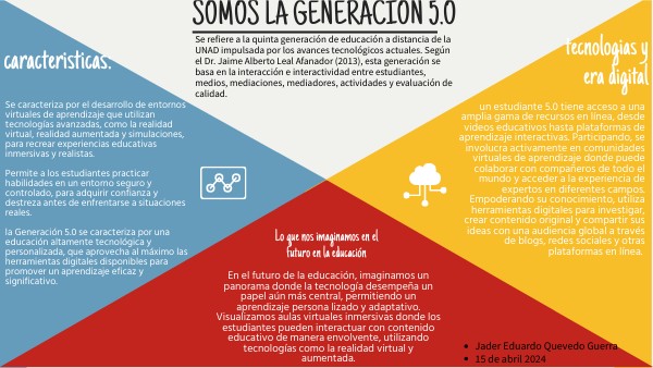 un estudiante 5.0 tiene acceso a una amplia gama de recursos en línea, desde videos educativos hasta plataformas de aprendizaje interactivas. Participando, se involucra activamente en comunidades virtuales de aprendizaje donde puede colaborar con compañeros de todo el mundo y acceder a la experiencia de expertos en diferentes campos. Empoderando su conocimiento, utiliza herramientas digitales para investigar, crear contenido original y compartir sus ideas con una audiencia global a través de blogs, redes sociales y otras plataformas en línea.