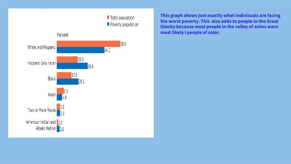 This graph shows just exactly what indivisuals are facing the worst poverty. This also adds to people in the Great Gtasby because most people in the valley of ashes were most likely l people of color.