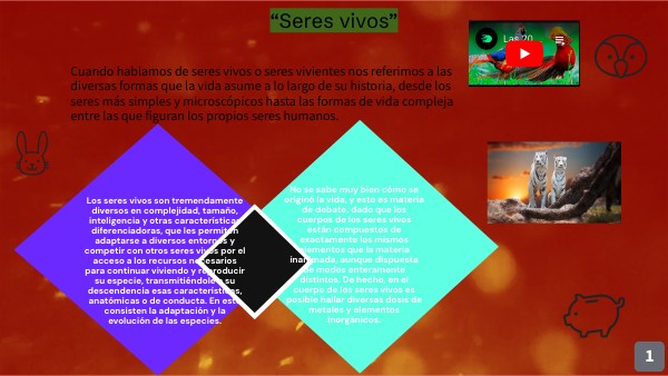 Los seres vivos son tremendamente diversos en complejidad, tamaño, inteligencia y otras características diferenciadoras, que les permiten adaptarse a diversos entornos y competir con otros seres vivos por el acceso a los recursos necesarios para continuar viviendo y reproducir su especie, transmitiéndole a su descendencia esas características, anatómicas o de conducta. En esto consisten la adaptación y la evolución de las especies.