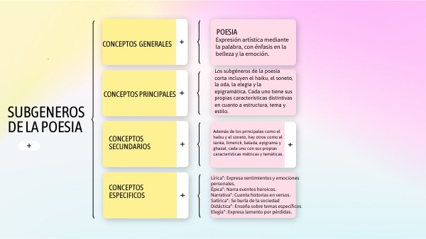 Los subgéneros de la poesía corta incluyen el haiku, el soneto, la oda, la elegía y la epigramática. Cada uno tiene sus propias características distintivas en cuanto a estructura, tema y estilo.