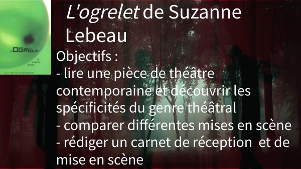 Objectifs : -ressentir la tension entre le personnage de la mère et celui de l'ogrelet - découvrir le sujet de la pièce en reconstituant l'enchainement des répliques