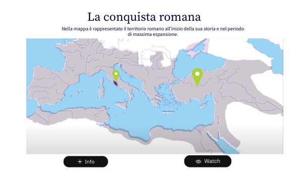 Nella mappa è rappresentato il territorio romano all'inizio della sua storia e nel periodo di massima espansione.