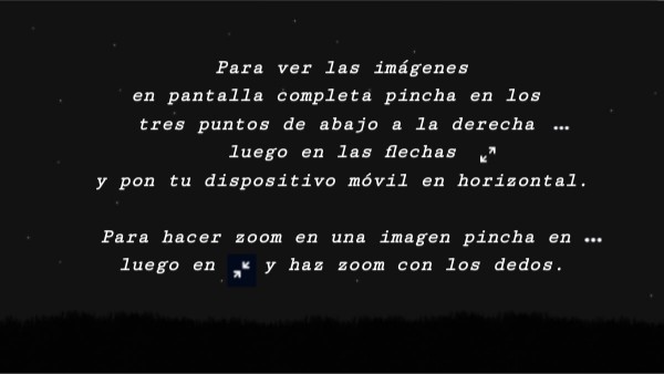 Para ver las imágenes en pantalla completa pincha en los tres puntos de abajo a la derecha luego en las flechas y pon tu dispositivo móvil en horizontal. Para hacer zoom en una imagen pincha en luego en y haz zoom con los dedos.