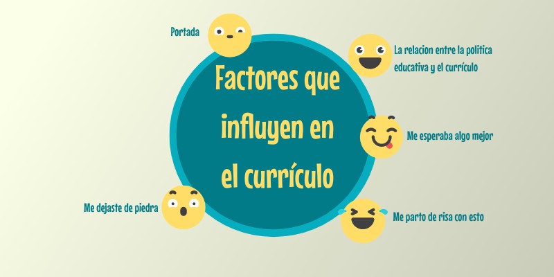 Todos los factores influyen en el currículo porque todos incitan a emplear un currículo basado a las necesidades sociales y culturales. si queremos ver como el factor económico influye en el currículo, podemos ver la falta de infraestructura el porque los jóvenes desertan y porque hay tan poca capacitación docente. Por consecuencia a estas necesidades, la política educativa debe de intervenir para garantizar y promover la atención al sector educativo. Es por eso que es importante tener el conocimiento del contexto social y cultural en el que se inserta la institución educativa, como consecuencia que se aproveche a favor del aprendizaje, todos los elementos culturales resultan valiosos para el buen desarrollo curricular incluyendo exitosamente con los objetivos y metas.