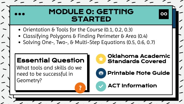 - All content in Module 0 is considered pre-requisite to the course & will be used to develop the Geometry Oklahoma Academic Standards